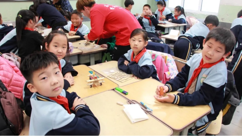 活动最后,实践团成员带领员工们进行了小飞机制作活动。大家一起动手组装模型、安装马达电池盒,制作出了一架架精美的小飞机,并在教室里进行了“试飞”表演。