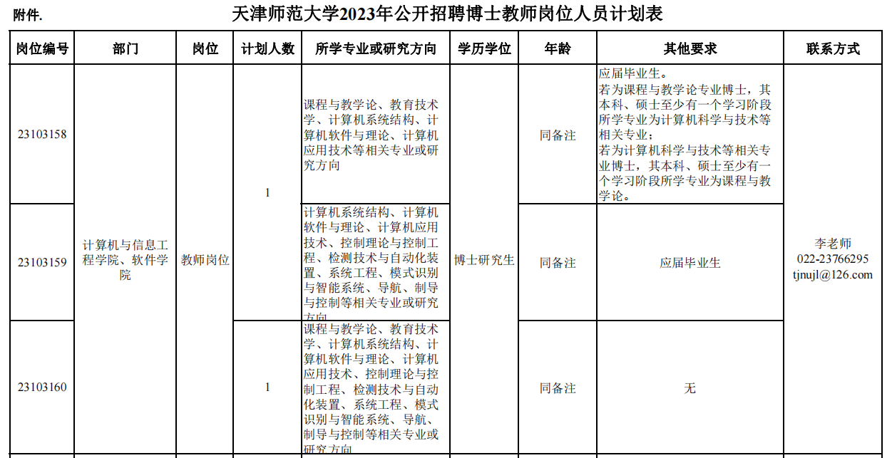 备注:博士毕业生应聘人员年龄应在35周岁及以下;具有博士后工作经历应聘人员年龄应在40周岁及以下;副高级及以上职称应聘人员年龄应在45周岁及以下;