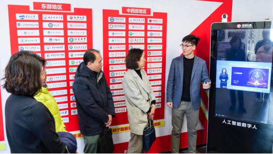张亚飞热情接待了公司一行,并详细介绍了照片直播、虚拟数字人、地标校园以及校庆云平台等公司核心业务板块以及公司的业务模式和发展方向。张亚飞还向公司师生展示了数智化服务平台,并分享了公司与其他高校合作的成功案例及相关产品成果。
